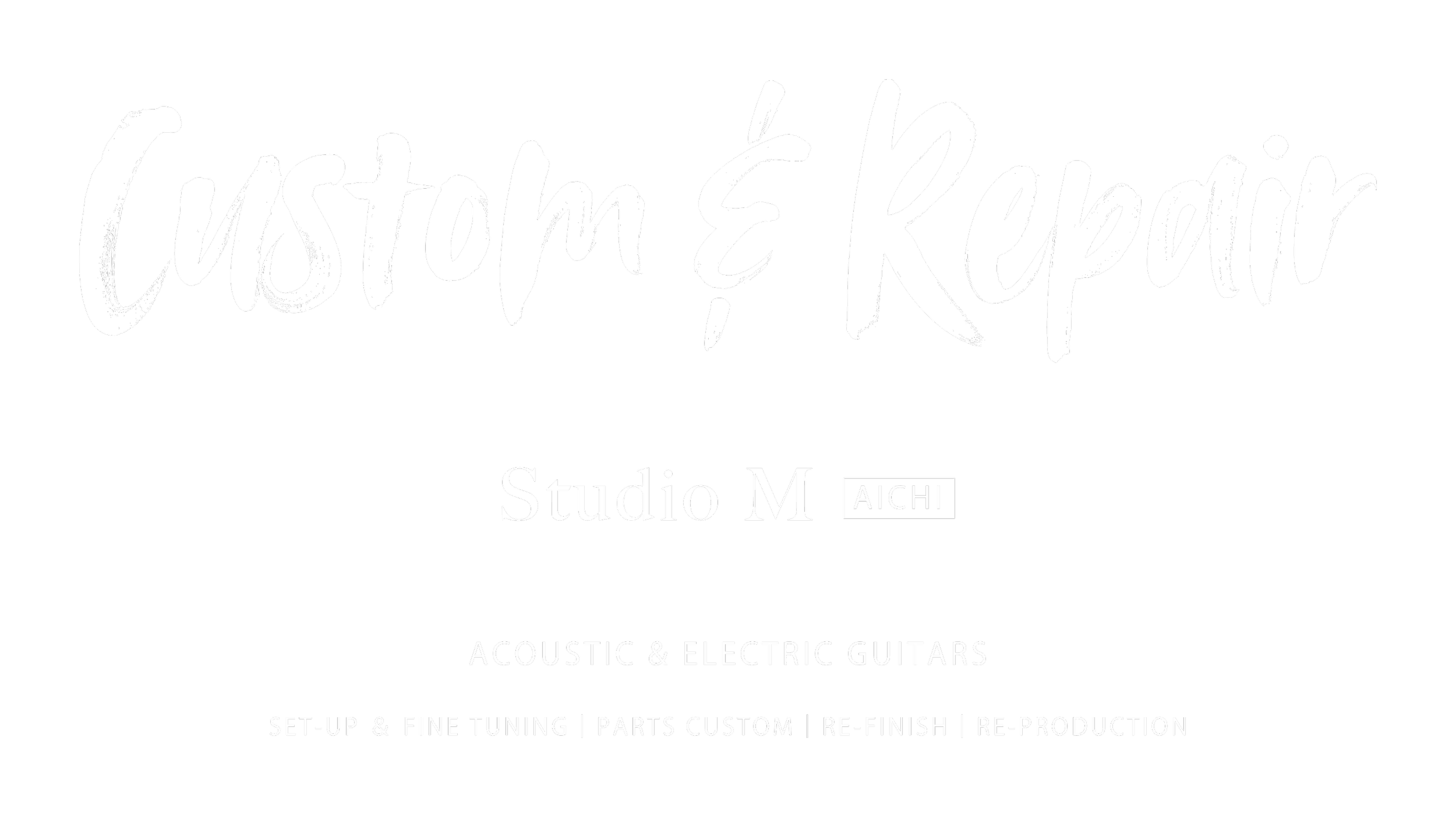 カスタム&リペア依頼相談をする 新着情報 Dec 23, 2024 Dec 23, 2024 年内のメンテナンス受付について Dec 23, 2024 Dec 25, 2023 Dec 25, 2023 年末年始の休業のお知らせ Dec 25, 2023 Jul 31, 2023 Jul 31, 2023 夏季休業のお知らせ Jul 31, 2023 Jul 5, 2023 Jul 5, 2023 駐車場変更のご案内 Jul 5, 2023 新着情報一覧を見る>>> スタジオエム のギターに対する考え方を見る Featured Sep 25, 2025 153 ご購入頂いたFurchの出荷前セットアップ Sep 25, 2025 すべてのフォルヒギターは当店で同様の作業を行ってから、お客様や販売店へお届けしています。 Sep 25, 2025 Jul 8, 2025 152 元起きしたネックの指板を削って改善する(Martin / D-28) Jul 8, 2025 フレットの擦り合わせだけでは対処できない元起きの症状は、指板を削ることで改善できます。 Jul 8, 2025 Jun 24, 2025 152 弦高とトレモロの調整(Fender / Jazzmaster) Jun 24, 2025 弦高とトレモロのアクションを最適化する基本的な調整内容です。 Jun 24, 2025 May 15, 2025 150 スイッチ形状を変更して操作性を向上させる May 15, 2025 ピックアップセレクターのスイッチ形状を変更して、演奏に集中できる直感的な操作性を目指します。 May 15, 2025 作業実績を全て見る>>> Featured Nov 28, 2024 ナットとサドルの素材選び(TUSQと牛骨について) Nov 28, 2024 ナットやサドルに使用される代表的な2つの素材の特徴をご説明いたします。 Nov 28, 2024 Mar 21, 2024 パソコン&事務デスクのアップデート Mar 21, 2024 年末に続きお掃除ネタ。あまりにも煩雑な仕事環境でしたので少し改装しました。 Mar 21, 2024 Mar 7, 2024 ピックアップの位相について Mar 7, 2024 ピックアップの購入や交換を検討される際に、事前に確認しておくことをお勧めします。 Mar 7, 2024 Dec 28, 2023 塗装ブースの大掃除 Dec 28, 2023 今年も300本近いギターを塗装しました。溜まり溜まった塗料の汚れを落として新年に備えます。 Dec 28, 2023 コラムを全て見る>>> お客様からよくある質問をまとめました。カスタム、リペアに関して不案な点や、疑問に感じたことはお気軽にお問い合わせください。 よくある質問を見る スタジオエム のカスタム、リペアの料金表になります。料金表にない内容に関してもお気軽にご相談ください。 プライスリストを見る