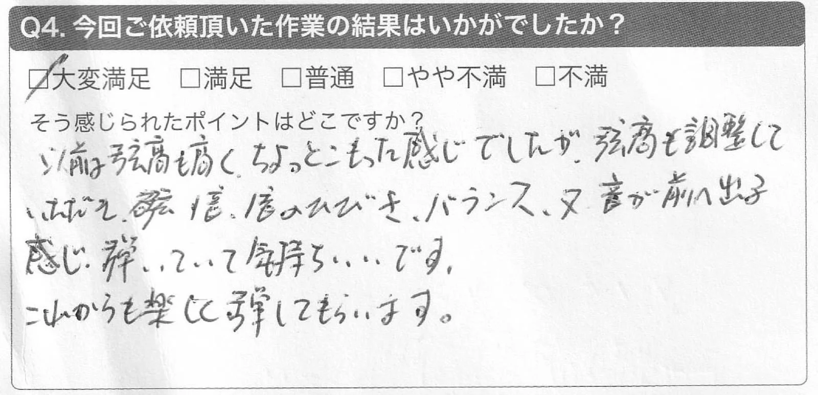 2020年10月にこのホームページをスタートしましたが、メンテナンス後のギターにアンケートハガキを同梱していた時期があります。