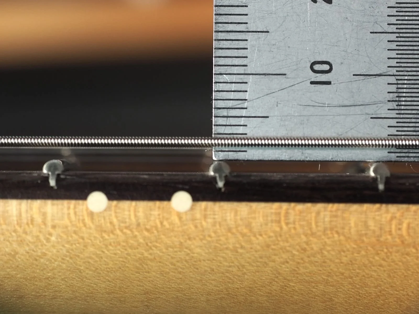 先ほどよりもネックが真っ直ぐになったように見えますでしょうか?この時点で弦高が0.1~0.2mmほど低くなります。