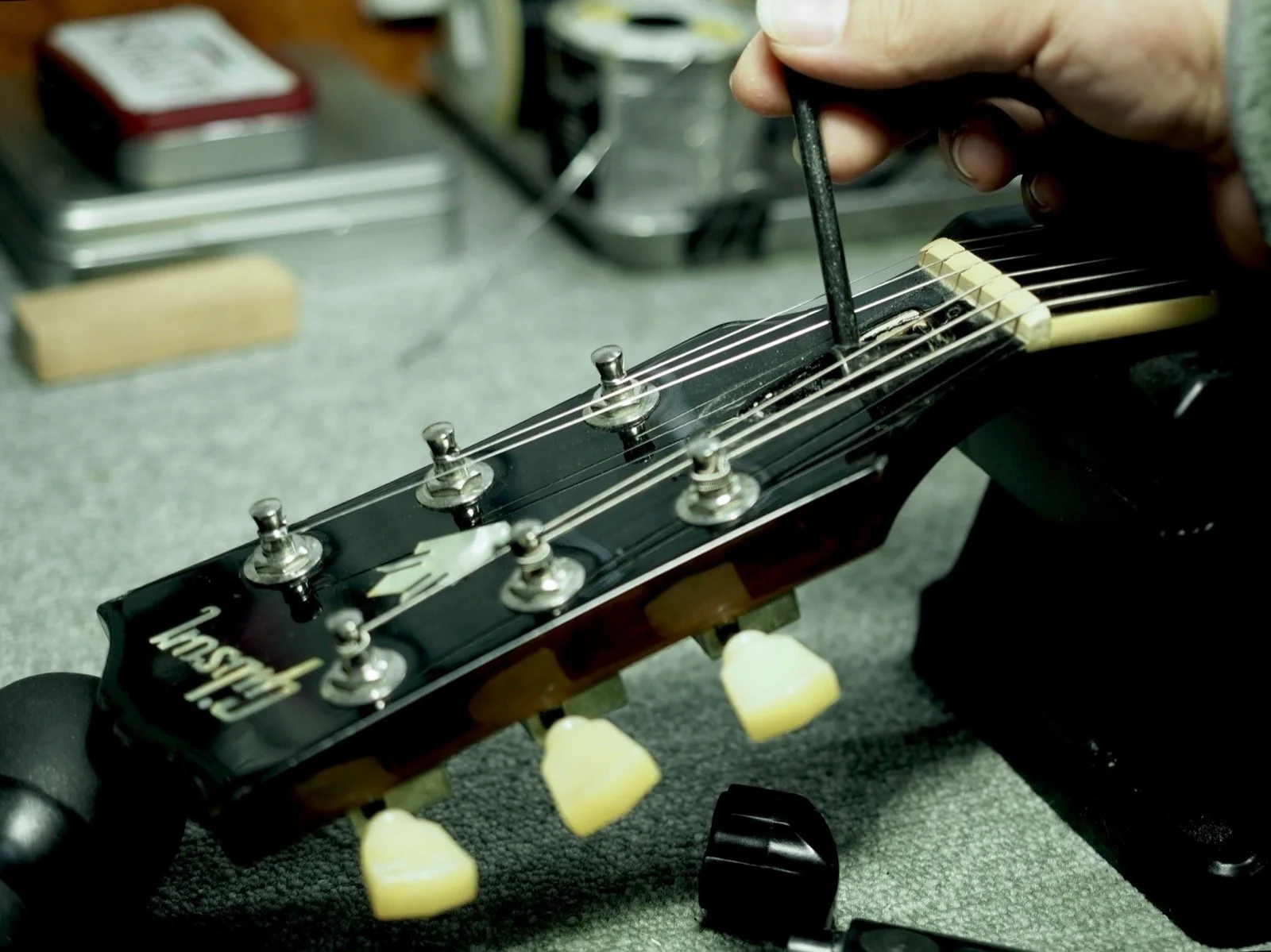 最適な弦高になるよう、ブリッジの高さを微調整します。