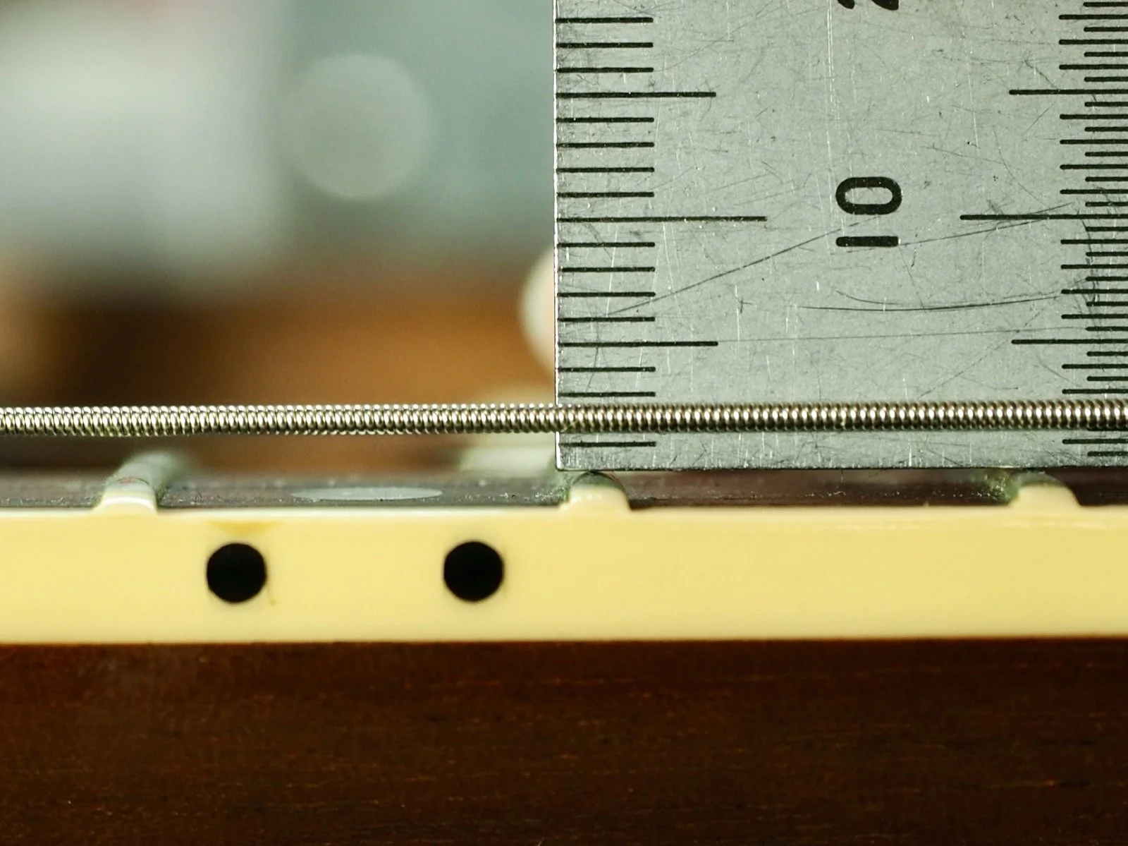 調整前の弦高は、6弦2.0mm 1弦1.8mmとやや高めです。