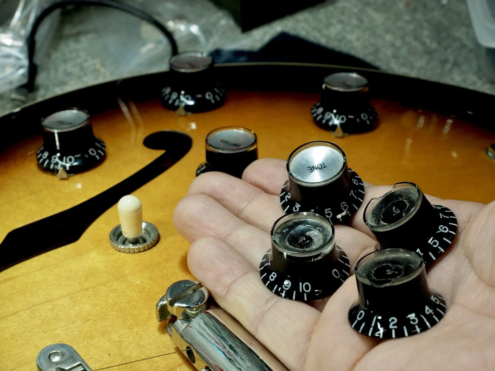 アウトプットジャックやポット、スイッチなど各部のナットを増し締めします。