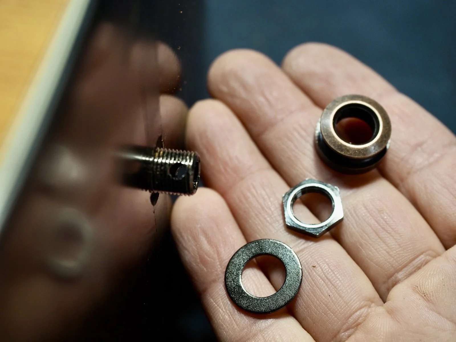 ボディ内部からエンドピンジャックを引き出して、外からナットで締め付けます。