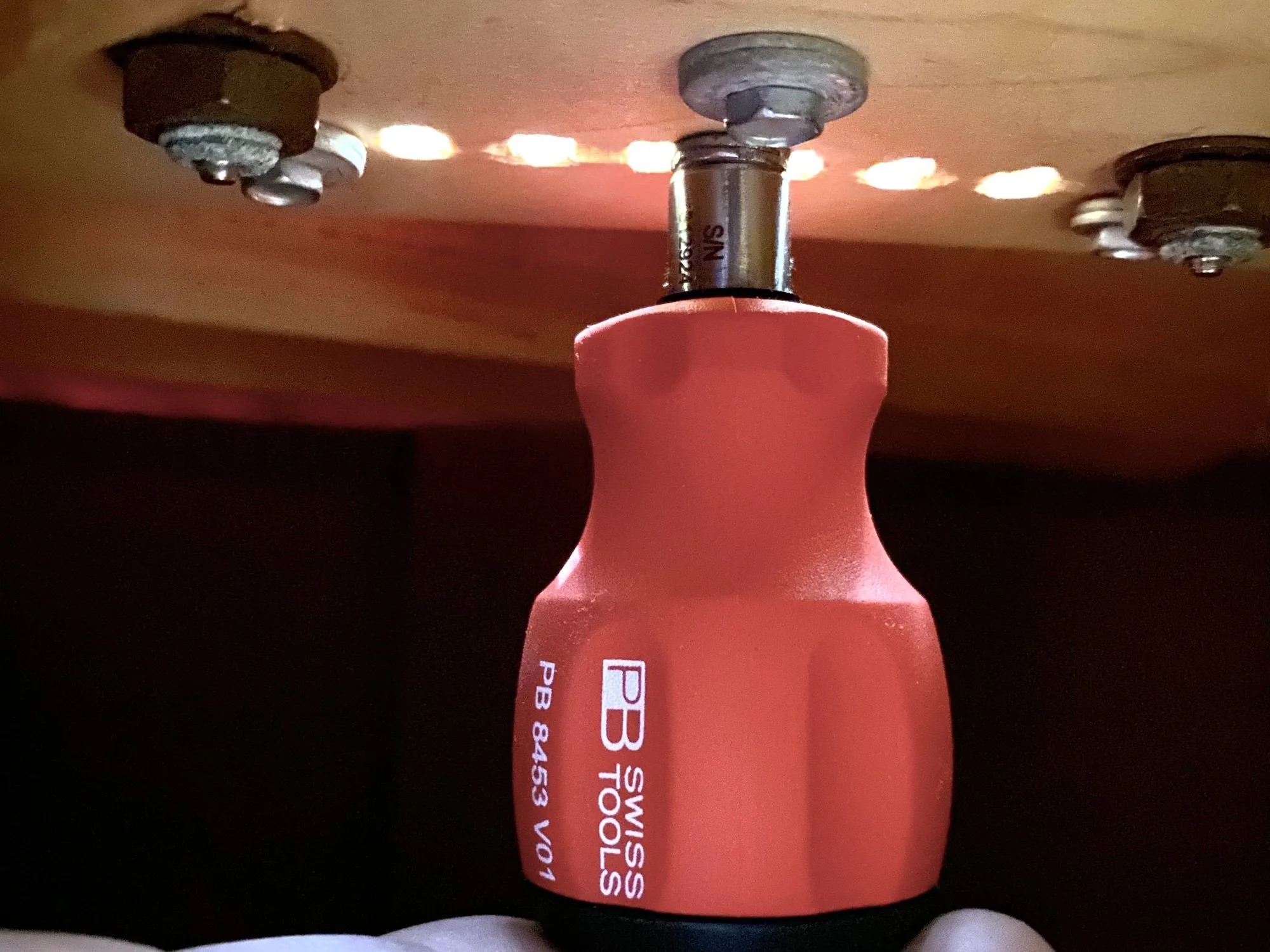 まず、ご自身のギターのブリッジがネジで固定されていることを知らなければ気付けません。また、狭くて見えないボディ内部に手を突っ込んでネジを締めるのは難しいものです。