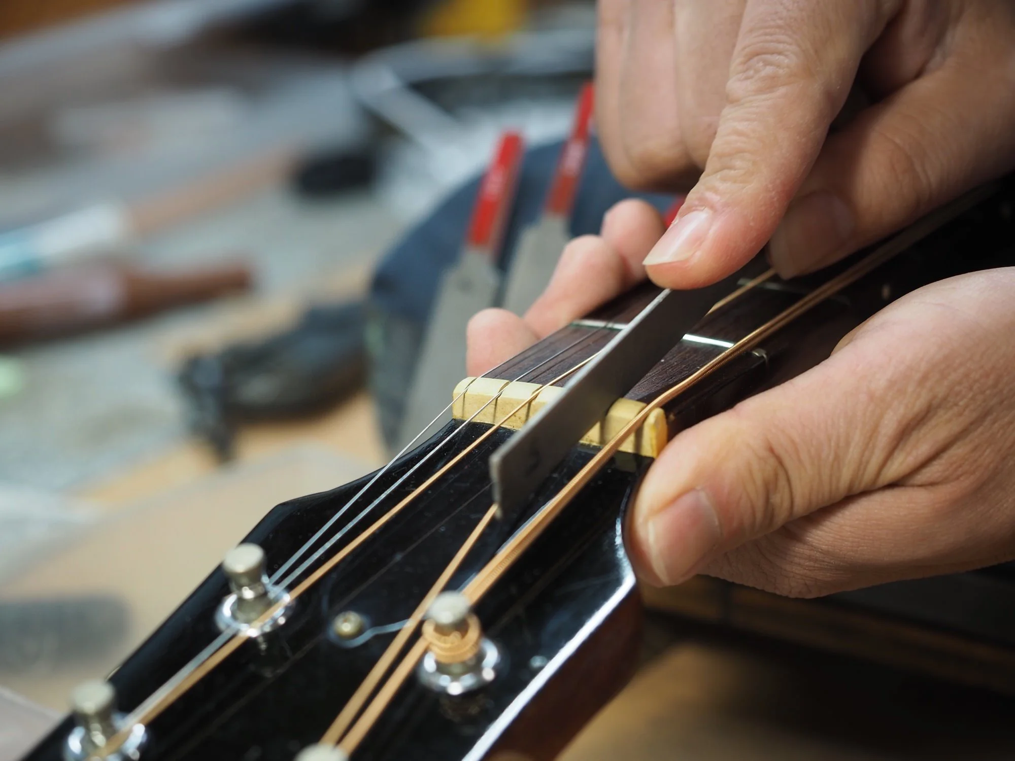 つづいて、ナット溝の深さや形状にばらつきがあったため、均一に整えました。