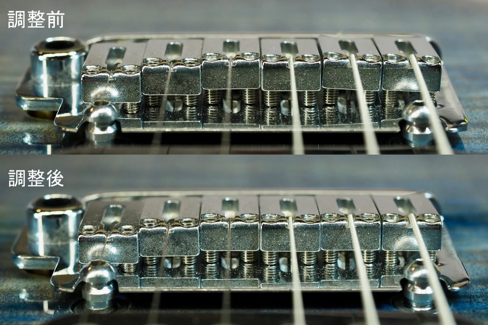 全体的にピッチが低めだったので、調整後は全体的にブリッジサドルが前に出ています。