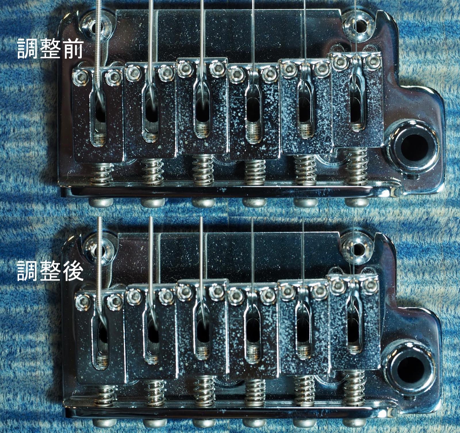 続いてトレモロユニットの調整を行います。今回はボディと水平になるように背面のスプリングを調整します。