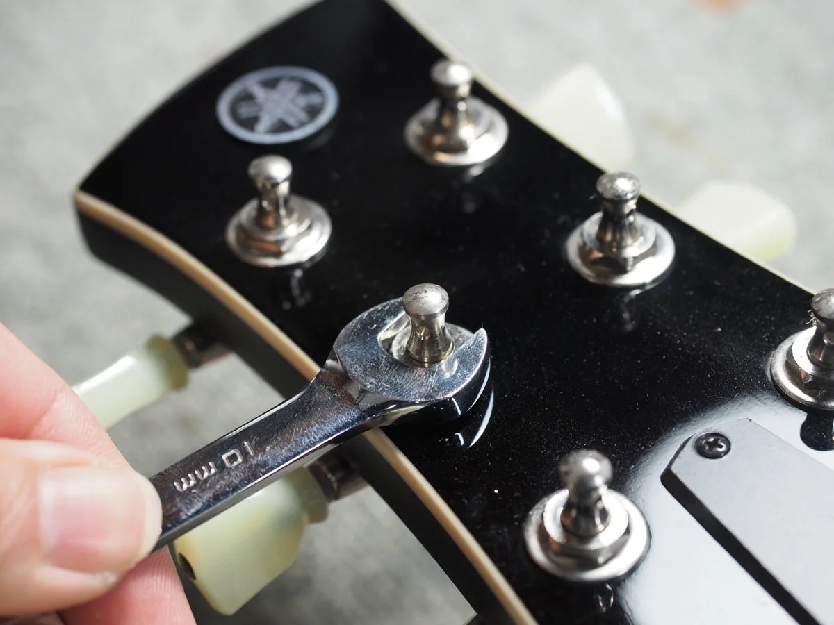 新しいギターは、しばらく使っているとペグの取り付けナットが緩んでくることが多いので、弦交換の際には一度増し締めされることをお勧めします。