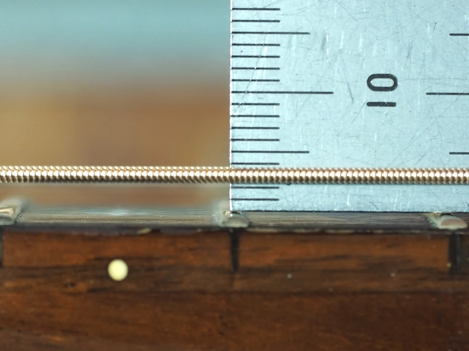 ナットは全体に高めですが各弦にばらつきがあります。よ~く観察すると3弦だけ少し低いのがわかりますか?